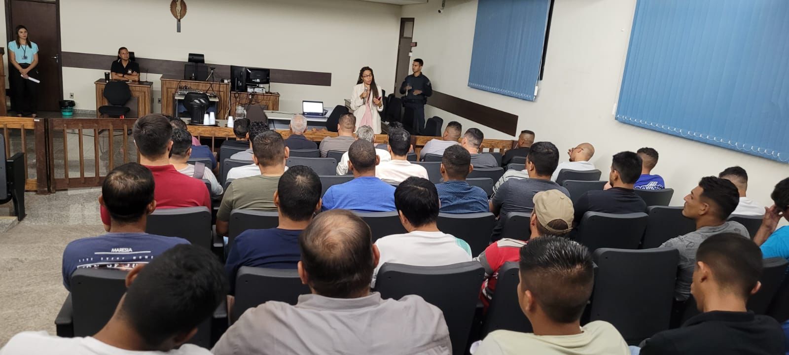 A palestra foi realizada no plenário do Tribunal do Júri da Comarca de Corumbá e contou com a presença de, aproximadamente, 60 homens, que tiveram deferidas contra si, medidas protetivas de urgência, nos últimos meses.