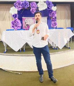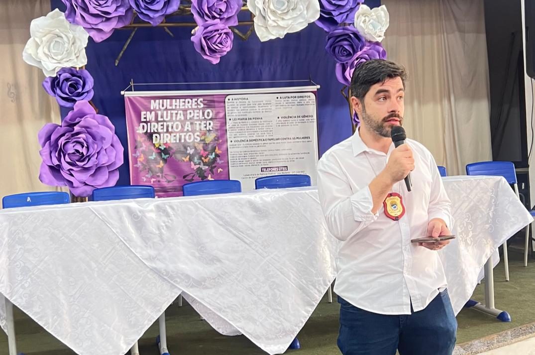 Nesta Sexta-Feira (18), a Polícia Civil por meio da Delegacia de Tacuru, representada pela Autoridade Policial, participou dos debates sobre o “ Agosto Lilás” e a prevenção à violência doméstica, no auditório Bruno Pelegrini, em parceria com a Secretária Municipal de Ação Social, Daiana Pedrotti, e sua equipe, membros da Polícia Militar e da Sociedade Civil.