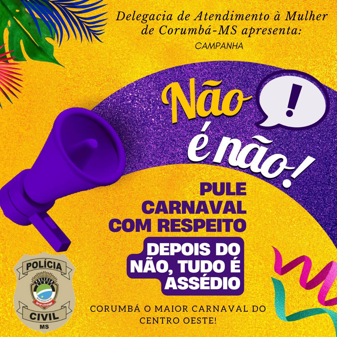 A Polícia Civil reforça seu compromisso em combater qualquer prática de violência sexual contra mulheres e destaca a campanha “Não é Não!”, principalmente neste período de carnaval.