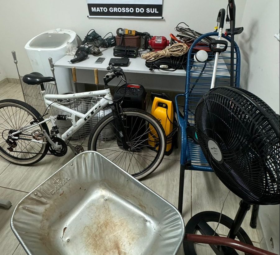 Na residência dele, além dos objetos subtraídos durante a madrugada, foram encontrados vários outros sem procedência lícita, incluindo ferramentas, extensões, caixas de som, máquinas de lavar roupas, botijões de gás entre outros. Em entrevista preliminar realizada com o conduzido, este informou que os objetos eram de furtos cometidos anteriormente e devidamente registrados na Delegacia de Polícia de Iguatemi.