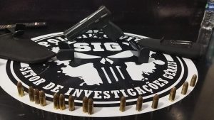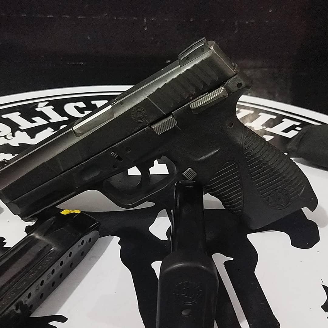 Por volta das 19h30min, os policiais civis conseguiram capturar o investigado. Com ele foi encontrado uma pistola da marca Taurus, calibre 9mm, modelo 24/7, com dois carregadores e 15 munições, além de um documento de habilitação com a foto do autor, mas com o nome de Paulo Augusto de Souza Lima Felix, o qual W.O.S. confessou que era falso e que teria adquirido para não ser descoberta a sua verdadeira identidade.