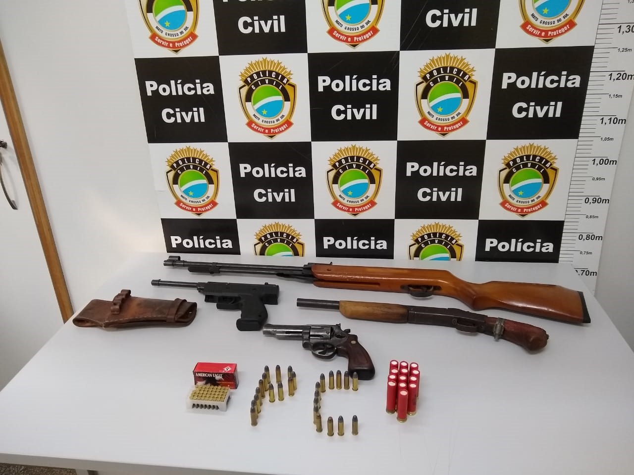 O enteado do acusado, de 17 anos foi apreendido. Foi cumprido ainda mandado de busca e apreensão na residência em que os dois se encontravam, onde foram encontradas 4 armas de fogo e 82 munições de diversos calibres.