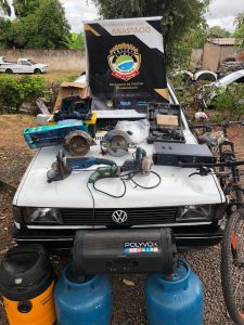 No local também foram localizados diversos objetos tais como ferramentas, maquitas, furadeiras, esmerilhadeiras e quatro bicicletas de alto valor aquisitivo. Os policiais avaliam que esses objetos são produtos de furto.