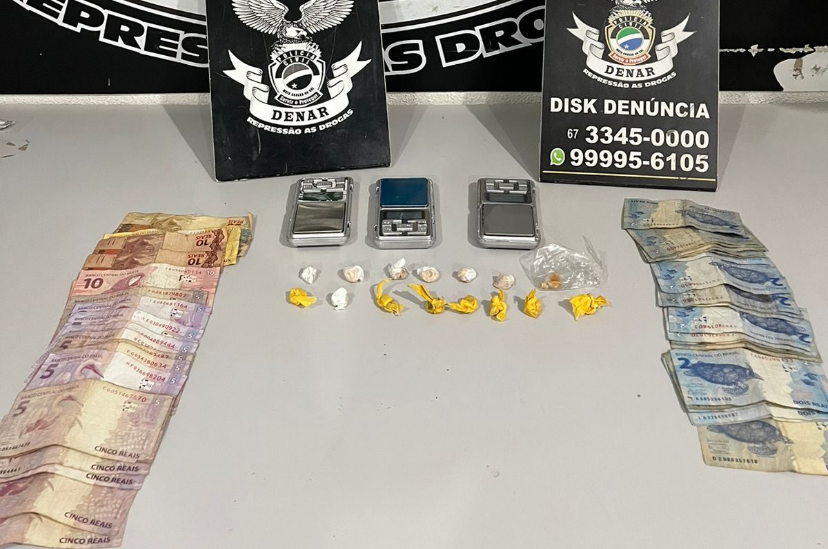 A Polícia Civil apreendeu na final da tarde de ontem, 24/05, 17 porções de pasta base de cocaína embaladas para venda, três balanças de precisão, e dinheiro proveniente do tráfico de drogas. Segundo apurado, os investigadores realizavam diligências para coibir o tráfico de drogas na região central de Campo Grande/MS, especificamente nas mediações da antiga rodoviária, quando visualizaram uma transação de entorpecentes acontecendo na frente de determinada residência.