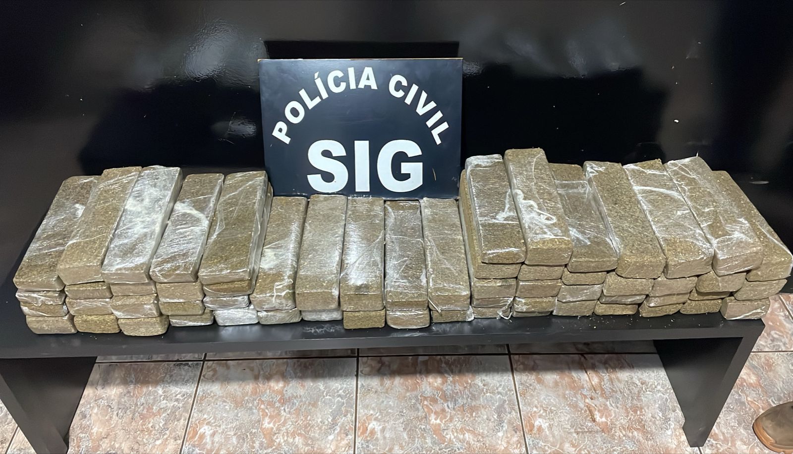 Foi feita uma inspeção no automóvel, onde foram localizados 63 tabletes de maconha, totalizando 44,6kg. Os investigados alegaram residir em Presidente Prudente-SP e disseram que estariam na cidade apenas efetuar a entrega do veículo.