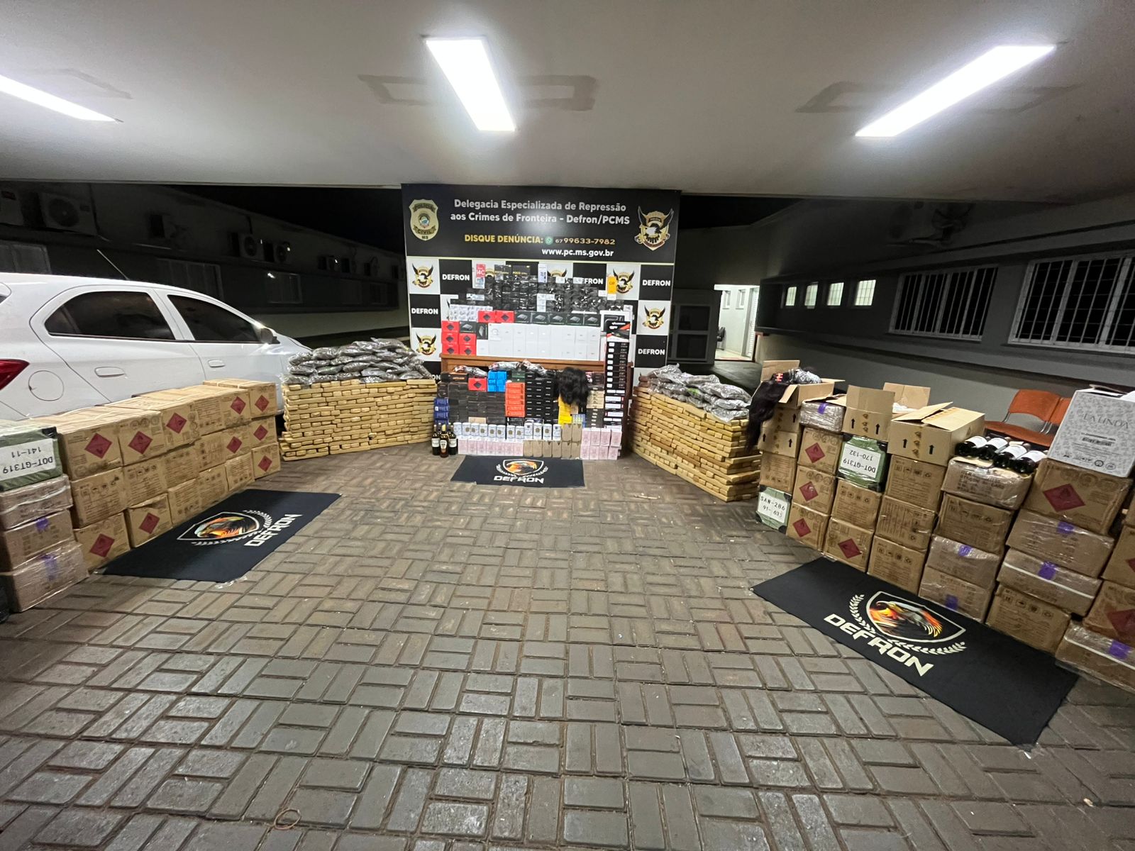 Nesta quarta-feira (2), a equipe de investigação da Delegacia Especializada de Repressão a Crimes de Fronteira – DEFRON deu sequência a uma série de diligências visando apurar a atividade do que ficou conhecida como “Narcomuambeiros”: indivíduos que se valem do subterfúgio de transportar produtos de contrabando e descaminho para transportar drogas.