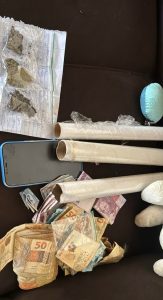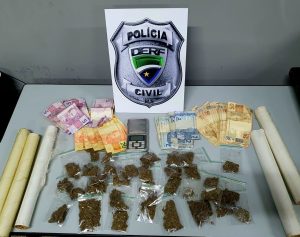 No primeiro imóvel, situado na Rua do Ébano, na Vila Marcos Roberto, os policiais civis apreenderam: dois invólucros contendo 10,50 gramas de maconha; três rolos de plástico filme para embalagem de entorpecentes; uma folha com anotações de controle de venda de drogas; R$ 1.929,00 em espécie e um veículo VW GOL. Já na segunda casa, na Rua Ranulfo Correa, na Vila Nhanhá, foram apreendidos: uma mochila contendo 31 porções de maconha embalada para venda (pensando ao todo 172 gramas); uma balança de precisão e invólucros plásticos para embalar drogas.