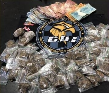 Durante monitoramento os investigadores flagraram o exato momento em que os traficantes entregavam o entorpecente a um usuário de drogas, sendo que imediatamente realizaram abordagem. Foi localizado em poder dos indivíduos mais de 80 porções de entorpecente já devidamente embalado para comércio, além de quantia em dinheiro proveniente do tráfico.