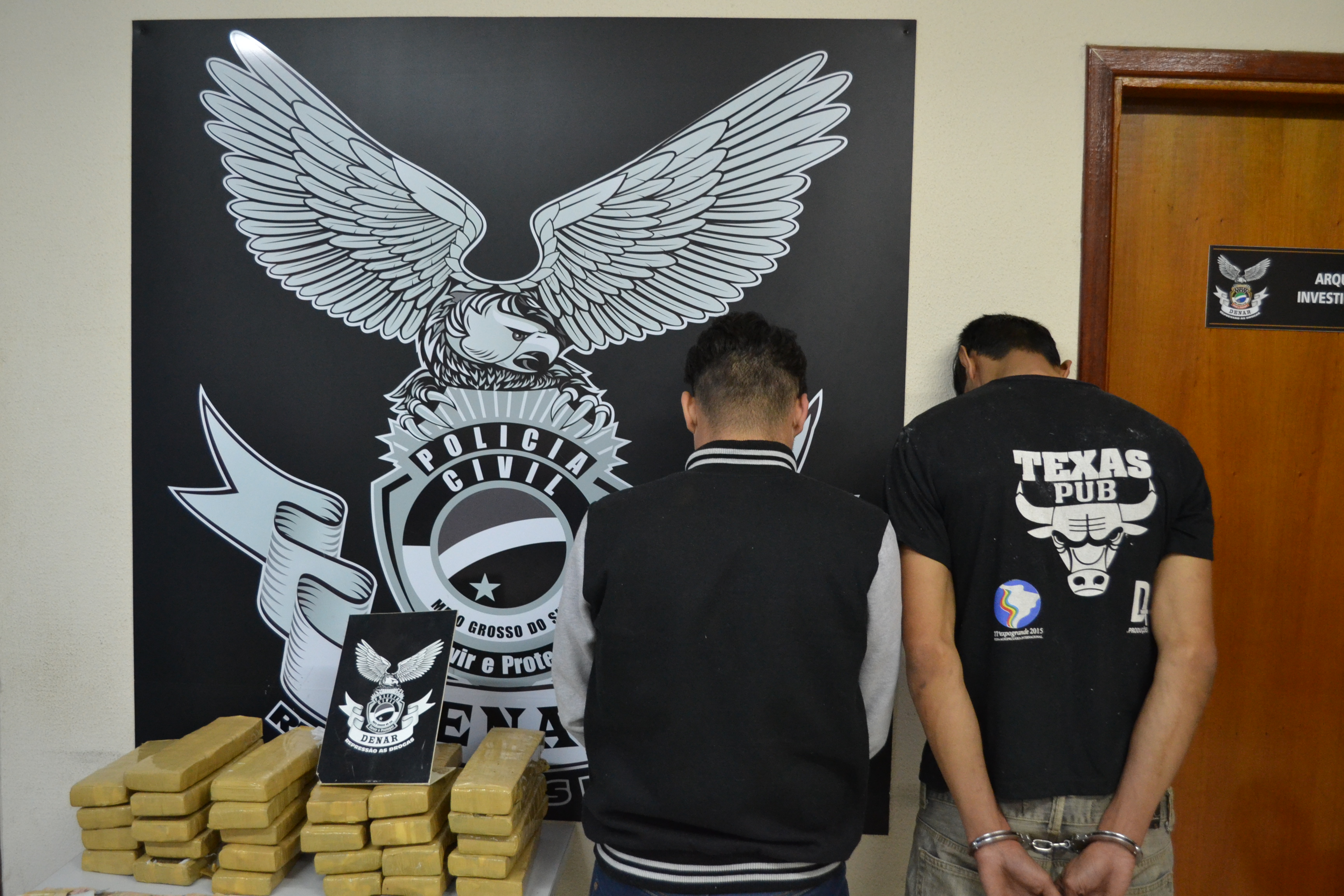 CAMPO GRANDE (MS): A Polícia Civil através da DENAR – Delegacia Especializada de Repressão ao Narcotráfico apresentou no final da manhã desta quarta-feira (24), TIAGO DOS SANTOS LIMA (31) e RAFAEL ZEFERINO FERREIRA CASTANHO (26). Eles são acusados pelo crime de Tráfico de Drogas e foram presos em flagrante enquanto iriam fazer uma entrega de drogas.