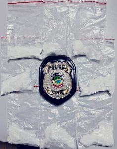 O homem foi localizado e em seu alojamento foram apreendidos oito pacotes de cocaína. R.D.D.S. confessou que estava comercializando drogas e, diante da situação flagrancial, foi conduzido até a delegacia, para a realização das providências de praxe.