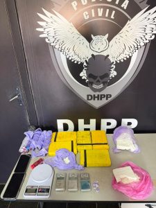 Durante a vistoria no veículo, foram encontradas porções de cocaína escondidas no console e um tênis feminino preto no porta-malas, posteriormente identificado como pertencente à vítima. A prima, abordada na sequência, admitiu a existência de entorpecentes no imóvel. No local, a Polícia Civil apreendeu seis tabletes de cocaína e três balanças de precisão.