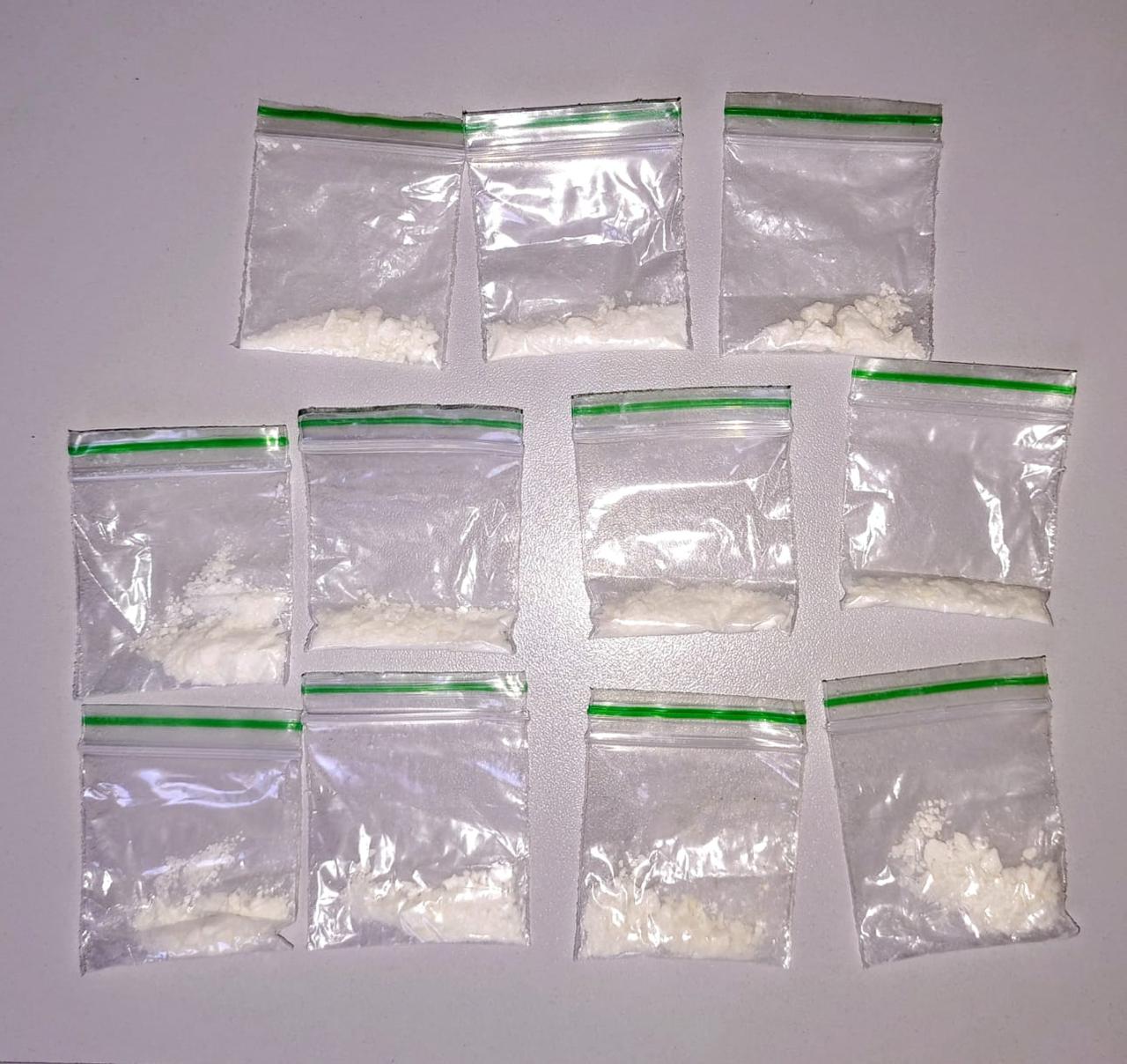 Na abordagem, foram apreendidas seis embalagens de crack, uma pedra maior da mesma droga ainda não fracionada e 11 porções de cocaína, todas prontas para comercialização. Também foram apreendidos quatro aparelhos celulares, dois cartões bancários, dinheiro em espécie e a motocicleta utilizada na prática do crime.