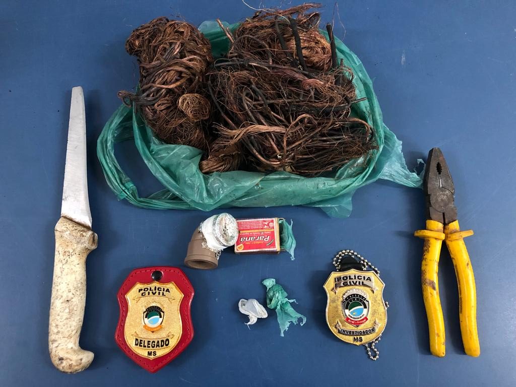 O autor já estava sendo investigado por diversos furtos na região central de Miranda. No momento da prisão ele estava com duas sacolas: a primeira de plástico contendo 1,6Kg de fios de cobre e a outra com um alicate e uma faca.