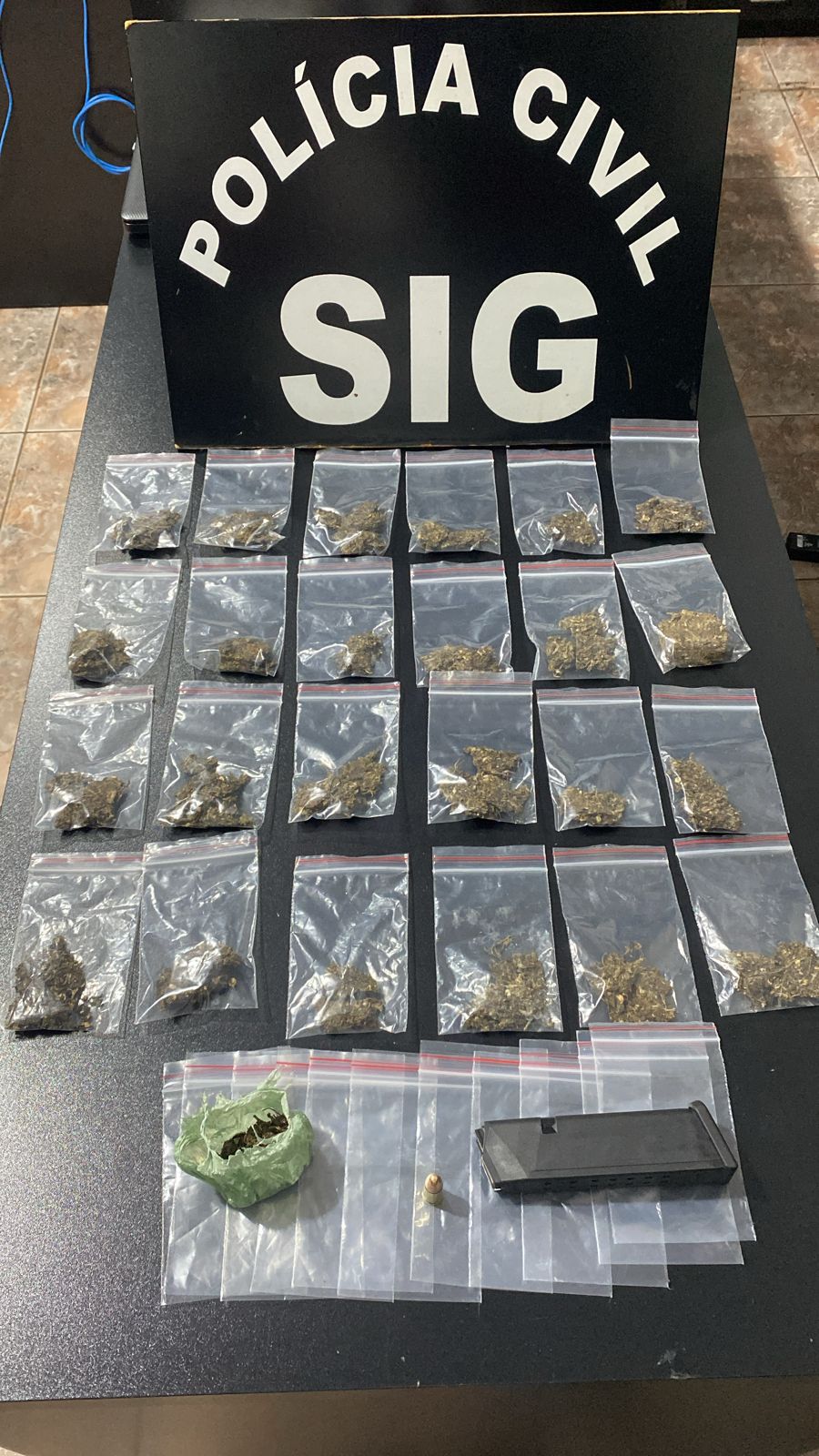 Nesta terça-feira (13), a Polícia Civil, através da Seção de Investigações Gerais (SIG), da delegacia de Nova Andradina, prendeu em flagrante delito quatro indivíduos do sexo masculino, com idade de 18 a 21 anos, por tráfico de drogas e porte de arma de fogo de uso restrito. Conforme consta, investigadores teriam sido informados sobre a possível prática de tráfico de drogas em um imóvel localizado no bairro Cristo Rei. No local, foram realizadas diligências onde policiais localizaram em posse dos quatro indivíduos um pote de vidro contendo 25 papelotes de substância análoga à maconha, prontos para comercialização.