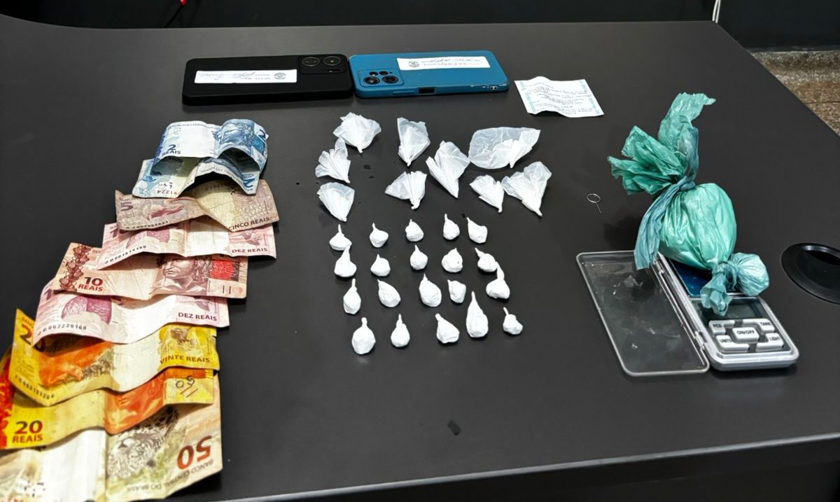 Durante o monitoramento, os policiais do SIG visualizaram o autor entregando o entorpecente a dois usuários de drogas, momento em que realizaram a abordagem do trio e encontraram porções de cocaína com eles. Em face do exposto, rumaram para a residência do acusado e encontraram 107 gramas de cocaína fracionadas em trouxinhas, 01 balança de precisão, 129 reais em notas fracionadas e comprovantes de depósitos em favor do líder da facção criminosa.