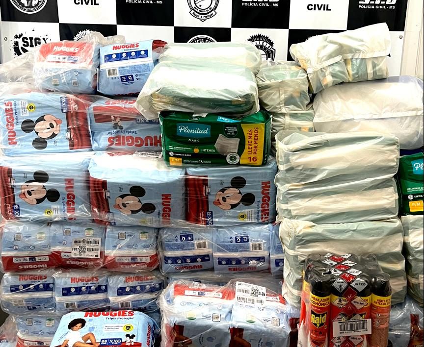 O homem foi identificado e sua residência localizada na Vila Piloto. Já naquele local, os policiais localizaram ocultados no imóvel do suspeito quase duzentos pacotes de fraldas descartáveis e quase cem frascos de inseticidas, todos em embalagens lacradas.