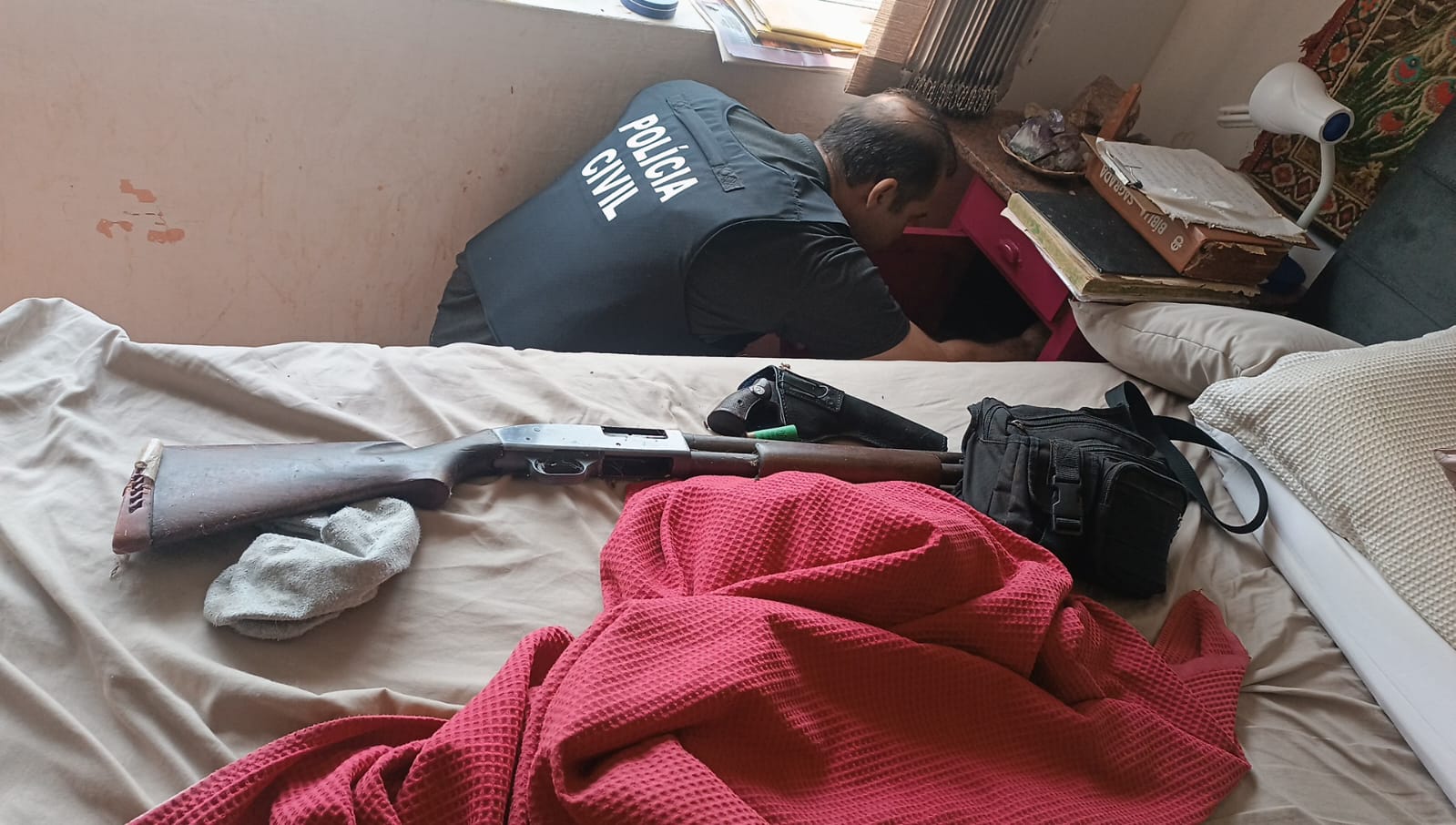 Na última quarta-feira (06), uma mulher, foi conduzida à delegacia, por posse de arma de fogo. Com ela, a equipe policial apreendeu duas armas de fogo, um revólver calibre.38 municiado com três munições intactas, duas munições deflagradas e uma espingarda calibre .12, municiada coma uma munição intacta, na cidade de Corumbá. A mulher, moradora em uma pousada em Corumbá, também é acusada de fazer disparos contra a filha, responsável por fazer a denúncia à Polícia Civil.