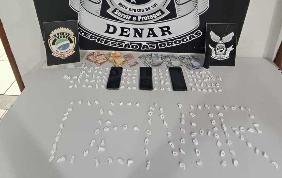 Durante os trabalhos, O.P.R. foi surpreendido de posse de uma espécie de tubo de ensaio contendo 190 trouxinhas de cocaína e da quantia de R$171,00 distribuída em 24 cédulas de valores diversos, enquanto I.C.E.S. estava de posse de R$32,00 em dinheiro. Além dos entorpecentes e da quantia em dinheiro citados, foram apreendidos 03 telefones celulares.