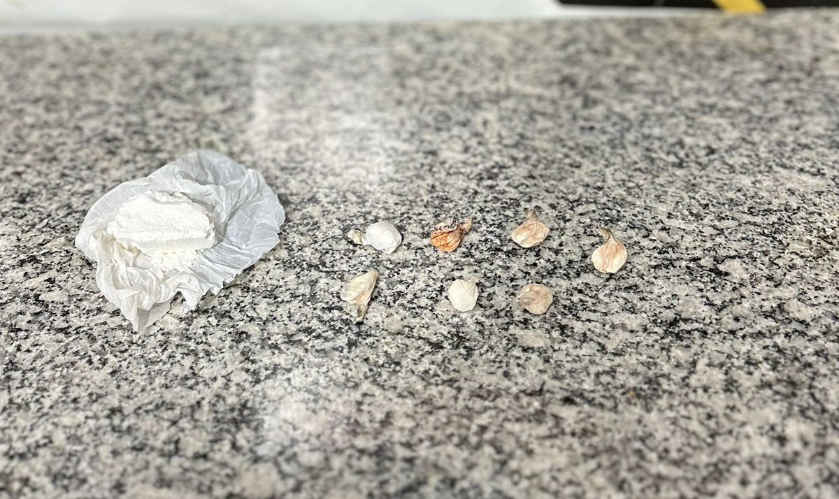 Após uma série de monitoramentos, os policiais civis conseguiram realizar uma nova prisão em flagrante, tendo localizado em sua residência 6 porções de cocaína fracionadas e em um esconderijo próximo à casa uma outra porção com cerca de 20g escondida em um palanque.