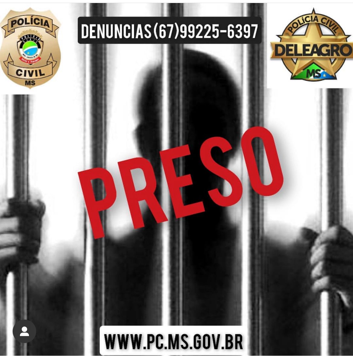 A Polícia Civil do Estado de Mato Grosso do Sul, no âmbito da operação SULMaSSP, por meio da DELEAGRO (Delegacia Especializada no Combate a Crimes Rurais e Abigeato) e com apoio da Delegacia Regional de Aquidauana, prendeu no início da tarde de ontem, 07/11, em uma propriedade rural no interior do município de Miranda-MS, um homem de 30 anos de idade que se encontrava foragido da justiça.