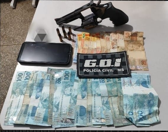 A Polícia Civil, por intermédio do Grupo de Operações e Investigações (GOI) e Delegacia de Rio Verde MT – MS, localizou um indivíduo foragido do sistema prisional onde cumpria pena pelo crime de tráfico de drogas e ainda tinha em seu desfavor um mandado de prisão pelo crime de Homicídio na forma tentada. Foi encontrado com ele, um revólver calibre 38 com 6 munições intactas.