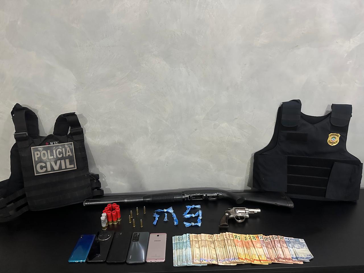 Na casa dele, os policiais civis localizaram mais R$ 3.720,00, em espécie, um revólver calibre .38 com numeração raspada e seis munições, além de uma espingarda calibre 12 com numeração aparente e dez munições. Diante disso, R.C.O.W., foi conduzido à delegacia, onde permanece à disposição da Justiça.