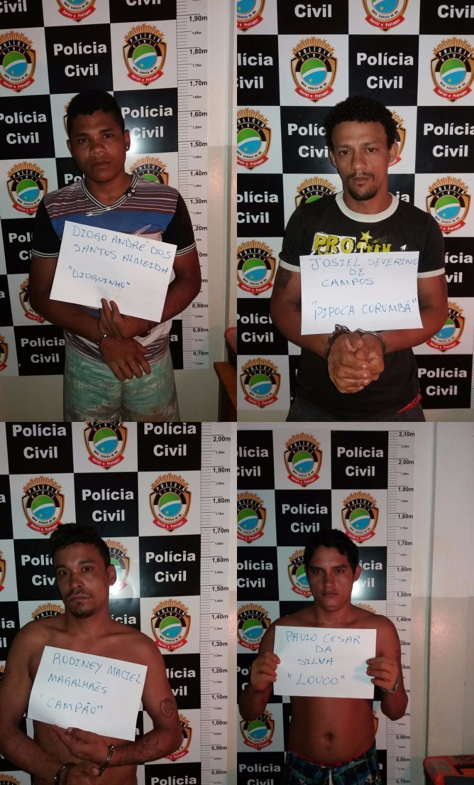 JOSIEL SEVERINO DE CAMPOS (35), DIOGO ANDRE DOS SANTOS ALMEIDA (18), RODINEY MACIEL MAGALHAES (26) e PAULO CESAR DA SILVA (25) foram detidos em uma residência. No local também foi localizado um colete balístico.