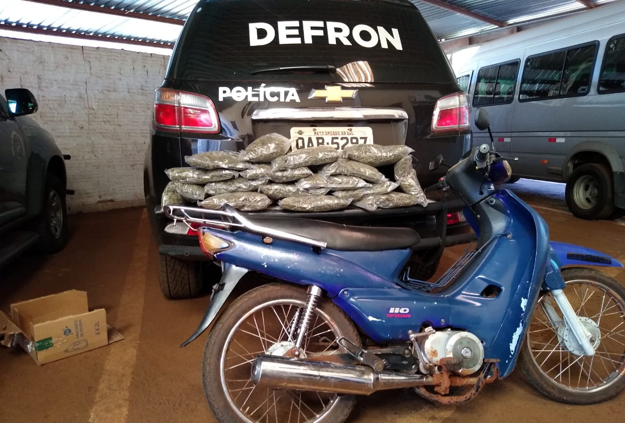 Ao verificarem a motocicleta, os policiais notaram que as caixas que o jovem trazia estavam carregadas com diversos pacotes droga, que é uma versão da maconha com maior concentração de Tetra-hidrocanabinol (THC), principal compenente ativo da maconha.