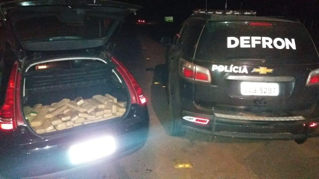 Na vistoria foram localizados diversos tabletes de maconha no interior do porta malas.
