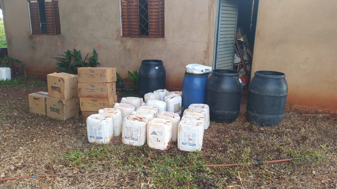 Sidrolândia (MS): A Polícia Civil do Estado de Mato Grosso do Sul, por meio da DELEAGRO prendeu na tarde de ontem, um homem de 49 anos, por manter em depósito para fins de comercialização centenas de litros e dezenas de quilos de agrotóxicos (inseticidas, fungicidas e herbicidas) e por receptar uma moto produto de roubo cometido mediante violência na cidade de Campo Grande.