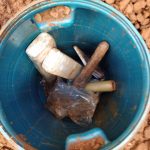 Ao cavarem no local, os policiais encontraram uma tampa plástica envolta em papel filme que dava acesso a um tambor plástico enterrado, e em seu interior encontraram um pedaço de madeira e um facão, utilizados para fracionar a droga, uma balança de precisão digital, 1 rolo de papel filme, diversos sacos plásticos utilizados para embalar a droga e 6 tabletes de substância entorpecente análoga a maconha, porém não foi possível retirar o tambor.