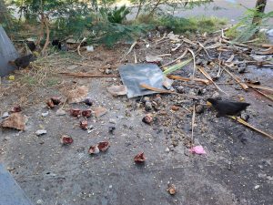 Na casa, estava ainda a esposa do autor e as três filhas menores de idade do casal. Além disso foi solicitada a presença da perícia cientifica, a qual registrou toda a situação de poluição e descarte de resíduos, bem como da criação irregular de aves, como galinhas e galos.