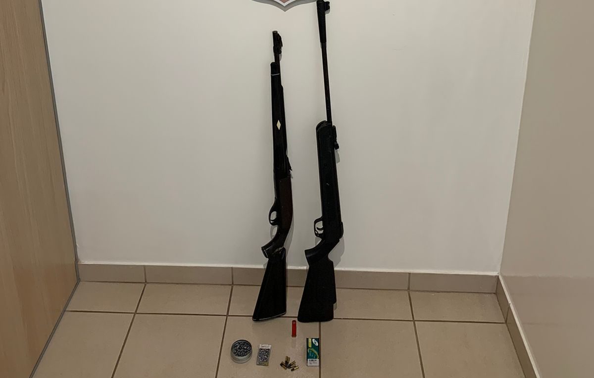 A ordem judicial foi expedida após denúncia de que a convivente do suspeito teria sido ameaçada e agredida por ele, após uma discussão. Em uma propriedade rural do suspeito foram encontradas duas espingardas, sendo uma delas de fogo, calibre 22. Também foram apreendidas cinquenta e sete munições, calibre 22, e uma munição, calibre 32.