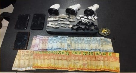 No local também foram encontradas 01 munição de cal. 22 e outra de cal. 38; 03 câmeras de vigilância; 01 DVR; 03 aparelhos celulares, bem como certa quantia de dinheiro em diversas notas trocadas.  Diante do exposto, o menor infrator e o usuário foram encaminhados até a DEPAC CEPOL, para os procedimentos legais cabíveis.