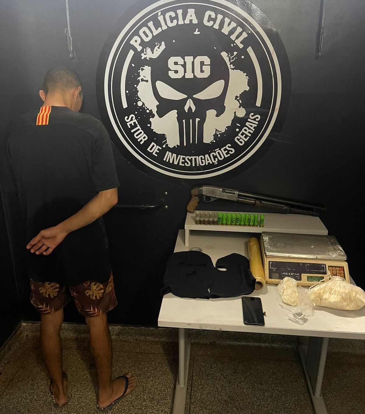 Pelos fatos, J.H.R.B. foi autuado em flagrante delito pelos crimes de tráfico de drogas e posse de arma de fogo com identificação raspada. O preso permanece à disposição da justiça.
