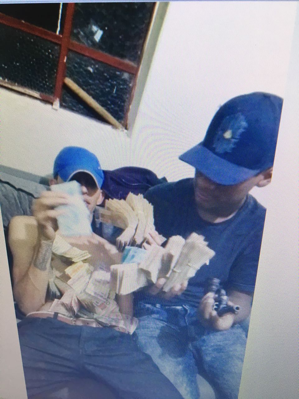 A Polícia encontrou nos arquivos do aparelho celular de FELIPE diversas fotografias onde aparece ele na companhia de GUSTAVO GASPARINO, sempre com elevadas quantias em dinheiro, armas de fogo do tipo revólver, levadas das agências dos correios, fotos dos cofres violados, materializando que esta organização criminosa são contumazes em crimes contra o patrimônio, especializadas em arrombamentos de cofres de Agências Bancárias e também dos correios.