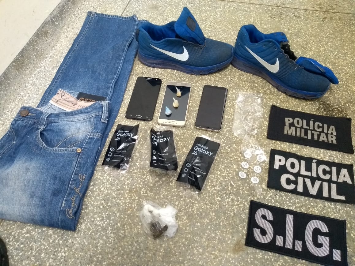 De imediato os agentes do SIG (Serviço de Investigação Geral) da Polícia Civil e do COB (Comando de Operações do Bolsão) da Polícia Militar identificaram o ladrão através do sistema de vídeo monitoramento da loja, tendo efetuado sua prisão rua Paranaguá, o qual ainda tentou evadir do local. Ao ser abordado o meliante estava com uma porção de maconha e um celular Samsung com registro de roubo e em uma revista em seu quarto foram localizados dois recipientes com pedras de crack.