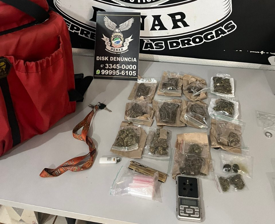 A Polícia Civil prendeu em flagrante um motociclista de 22 anos por tráfico de drogas, em Campo Grande-MS. A prisão foi feita nesta quinta-feira (05), por uma equipe da DENAR (Delegacia Especializada de Repressão ao Narcotráfico).