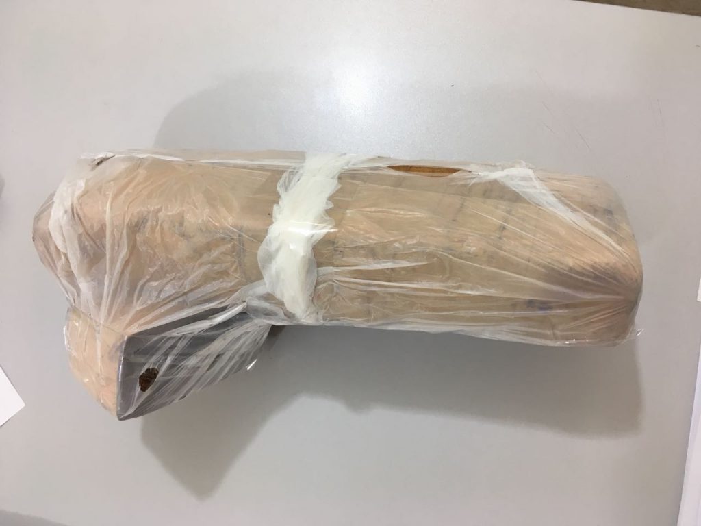 A polícia realizou uma busca no local e encontrou um tijolo e um tablete de maconha enterrados, cujo peso resultou em pouco mais de um quilo, além de uma porção de cocaína e uma munição de revólver calibre .38 na sala da casa.