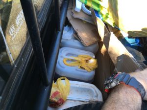Os investigadores seguiram os rastros deixados no local do furto até uma cabana de pescadores, onde apreenderam três galões com aproximadamente 50 litros de óleo diesel. Um dos pescadores apresentou uma nota fiscal, alegando ter adquirido o combustível no Estado do Paraná, porém os agentes verificaram que o tanque da camioneta já estava cheio, além de existir combustível excedente em galões escondidos entre os apetrechos de pesca. A polícia verificou ainda, que havia sinais de óleo diesel derramado do tanque da camioneta, indicando que fora colocado naquele local.