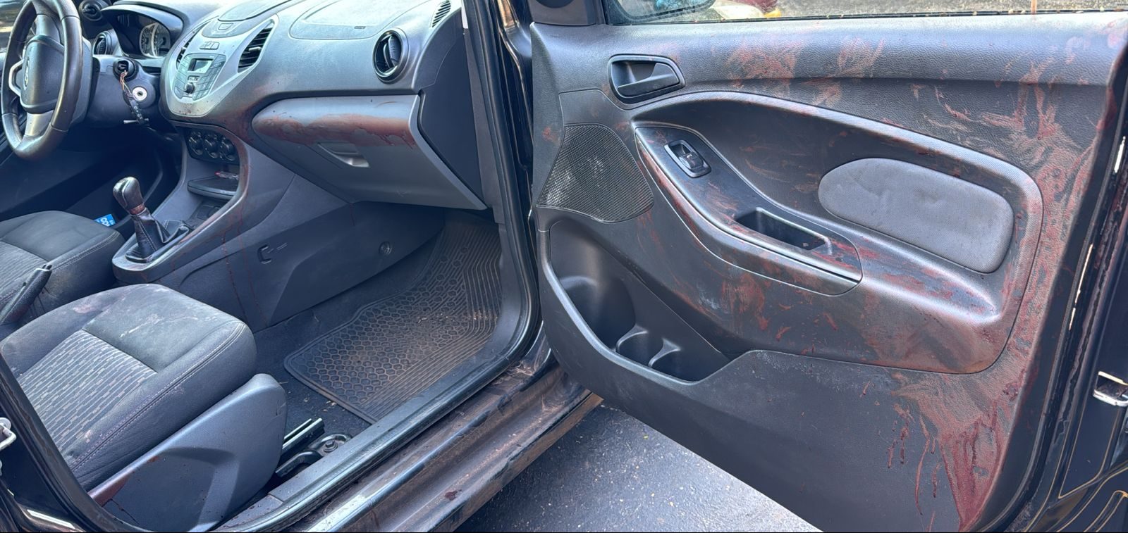 Diligências foram realizadas na residência de L.V.P., onde foram encontrados uma mochila contendo uma corrente de ouro da vítima, um celular, a chave do veículo, documentos e roupas ensanguentadas. O veículo Ford Ka foi encontrado abandonado próximo a um hospital, sem placas e com vestígios de sangue, indicando que o crime ocorreu dentro do carro.