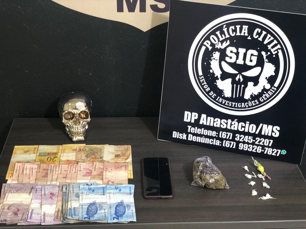 Anastácio (MS): Agentes do Setor de Investigações Gerais (SIG) da Delegacia de Polícia de Anastácio prenderam em flagrante, na tarde de ontem (20), um jovem de 20 anos suspeito de tráfico de drogas no bairro Jardim Campanário.