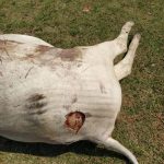 No rio da propriedade foi encontrado couro de bovino de um espécime recém carneado ao lado do abatedouro ilegal. Em anexo a residência da propriedade existe uma estação de desossa e também foram encontrados no interior da residência três freezers e diversos apetrechos de desossa. Em continuidade as buscas no imóvel foram encontrados diversos ossos, couros de animais e descartes de equipamentos utilizados no abate.