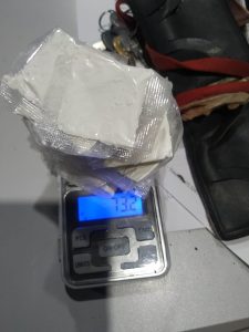 Além disso, também dentro do mesmo quarto, foi encontrado um invólucro com cocaína, devidamente embalado, com 29,2 gramas de cocaína.