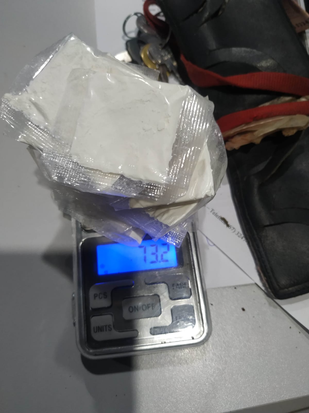 No local, os policiais encontraram, dentro do único quarto em que ficam os autuados, 34 porções de cocaína, devidamente embaladas em plástico, prontas para o comércio, com peso de 73,2 gramas.