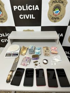 A Polícia Civil, por intermédio da Delegacia de Mundo Novo, prendeu nesta quinta-feira, 20/04, em flagrante, J.M.C., de 27 anos, que utilizava sua residência, na Rua Cândido Ferreira, Vila Nova, como ponto de venda de drogas (boca de fumo), bem como apreendeu maconha, cocaína e dinheiro advindo da traficância.