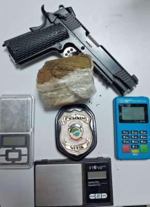 Durante as buscas, os policiais encontraram A.O.C., (26), conhecido por envolvimento com tráfico de drogas. Na casa havia duas balanças de precisão, um simulacro de pistola e cerca de 210 g de maconha, que estava em um dos quartos.