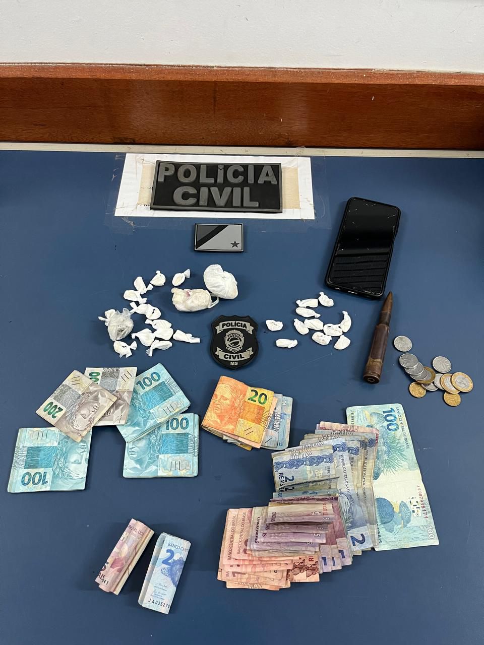 Em duas residências, os policiais civis cumpriram mandados de buscas e apreensão. As ordem judiciais são provenientes de investigações sobre tráfico de drogas, que tiveram início após a prisão de parte da família que comandava o tráfico de drogas na Rua Nova, em Miranda, região conhecida por “Cracolândia”.