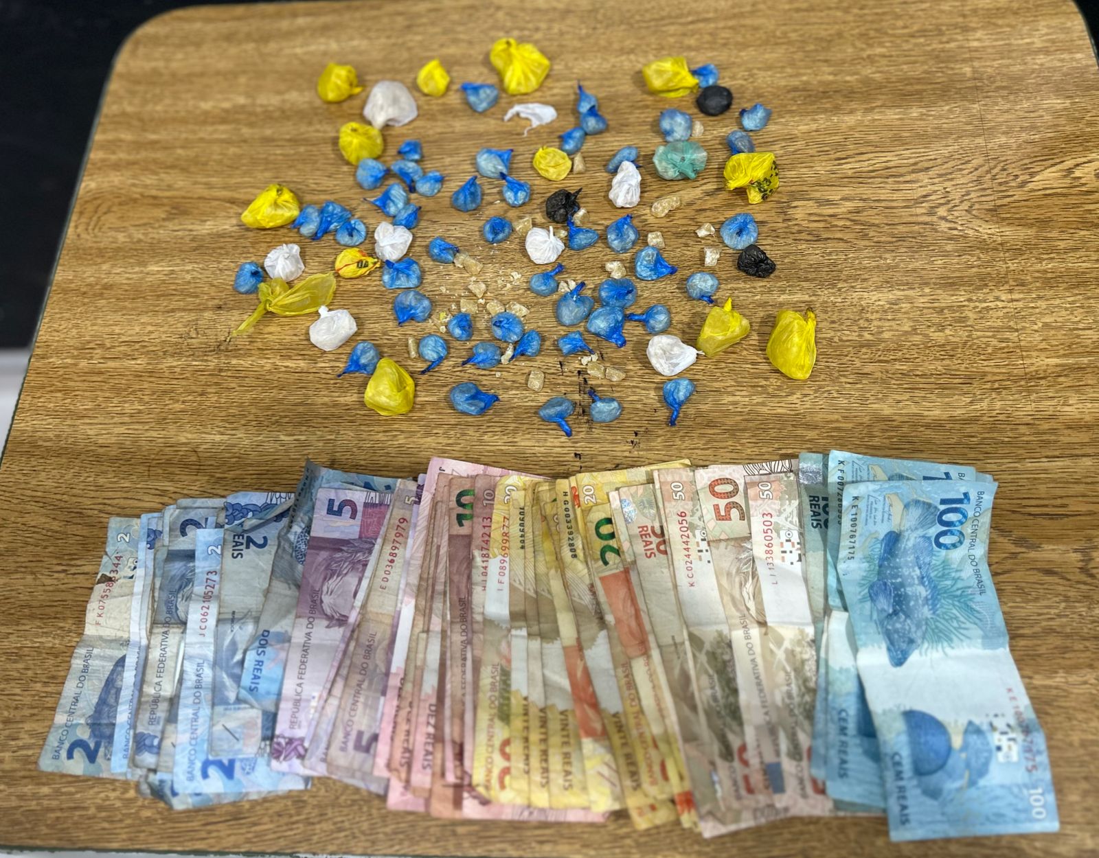 Escondido no sutiã da mulher, a equipe ainda localizou um saco plástico contendo inúmeras porções de crack, que totalizaram cerca de 115g da droga. Em seu bolso, foi localizado dinheiro em notas trocadas de diversos valores.
