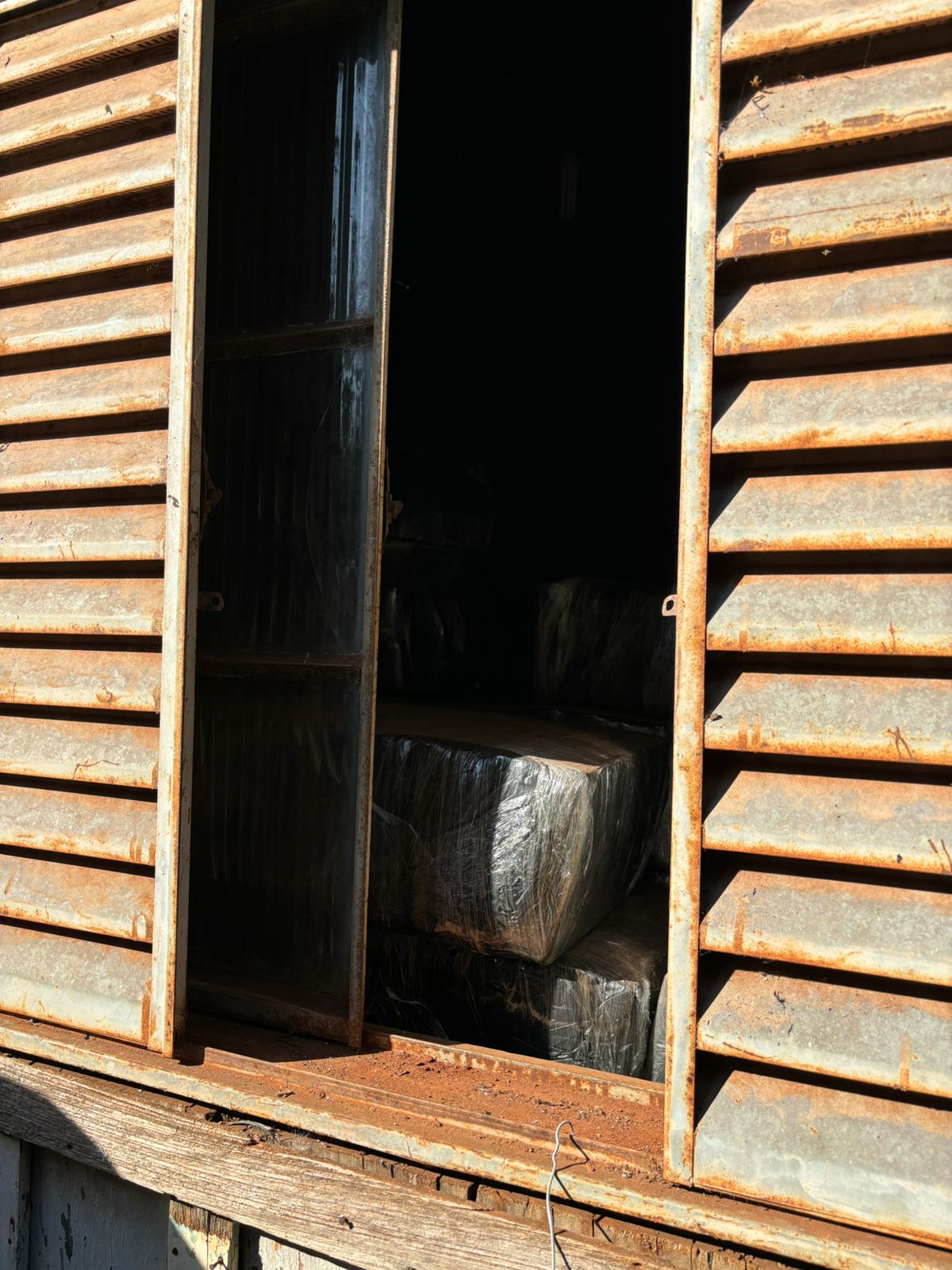 Dentro da propriedade, foram encontrados 259 fardos de maconha, totalizando aproximadamente 6,7 toneladas. O responsável pelo armazenamento da droga, L.M.M., de 55 anos, foi identificado e preso em flagrante pela Autoridade Policial, sendo autuado pelo crime de tráfico de drogas (artigo 33 da Lei nº 11.343/06).